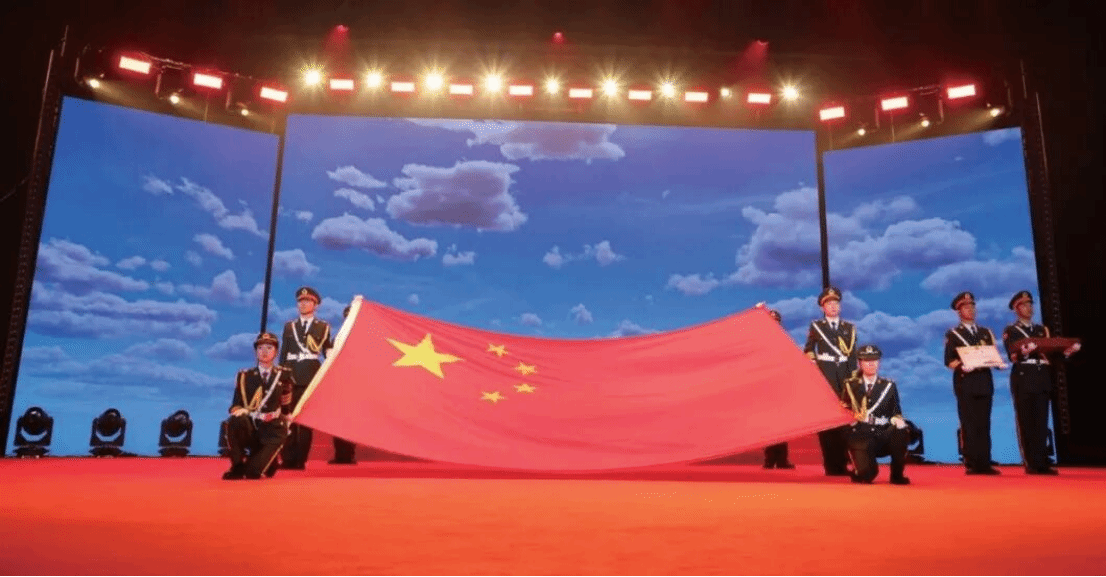 2024年10月19日,我院庆祝建校75周年大会隆重举行。在国旗护卫队队员护卫下,我院获赠的天安门广场国旗庄严入场并在主席台中心位置徐徐展开,全体人员面向国旗齐声高唱国歌,许党报国的崇高信念、爱党爱国的深厚情怀在每个人内心深处澎湃激荡、蓬勃昂扬。