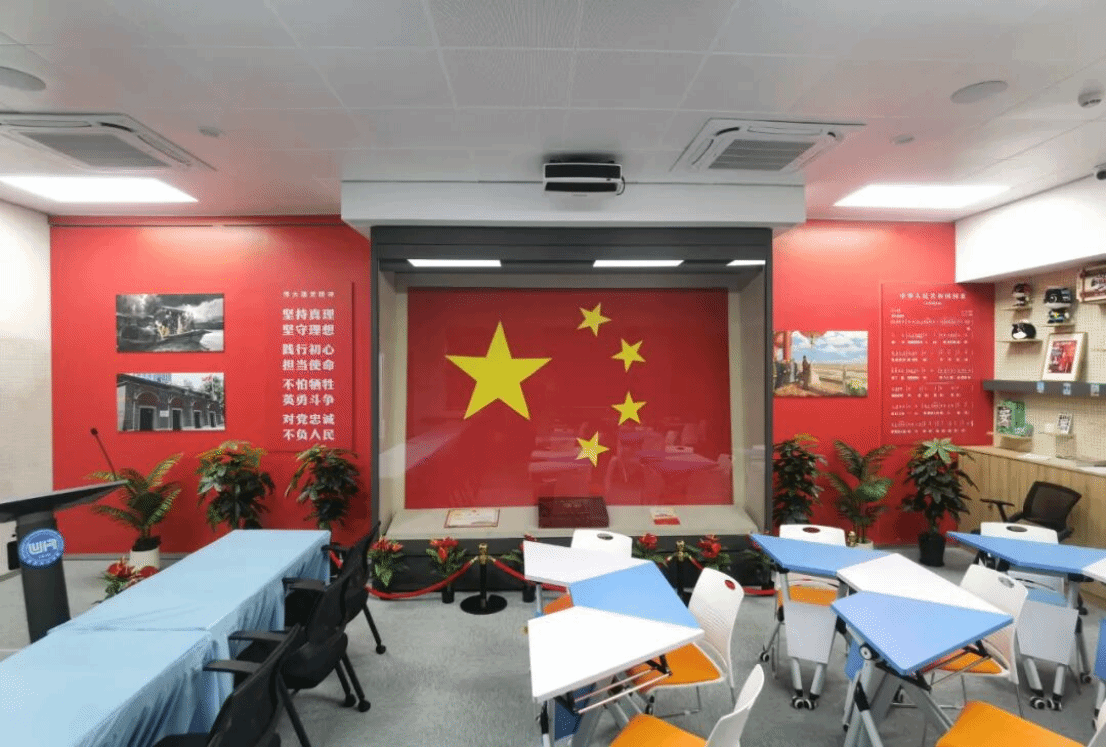10月15日,学院在望园举行“忠诚教育室”启用仪式。教育室正中央展柜中,编号“2023-0289”的国旗庄严展示,这面国旗于2023年10月16日在天安门广场升起。10月16日是我院正式建校的日期,北京市人民政府天安门地区管理委员会将这面珍贵的国旗赠予我院,作为开展爱国主义教育的特殊教材。