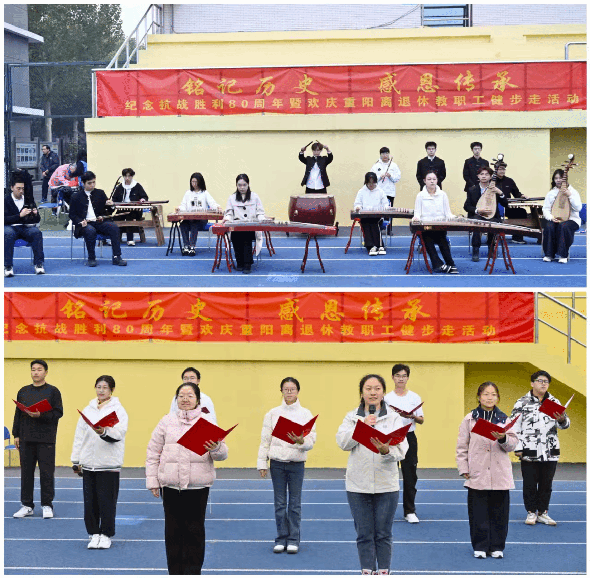 随后,学院国风民乐团和朗诵社的同学们先后为老同志们献上了精彩节目,即民乐演奏《象王行》和诗歌朗诵《放飞中国梦》。乐声气势恢宏,朗诵铿锵有力,尽显民族坚韧不拔、昂扬向上的精神风貌,带领大家感受时代脉搏与梦想翱翔的力量,赢得阵阵掌声。