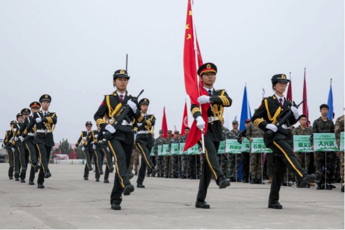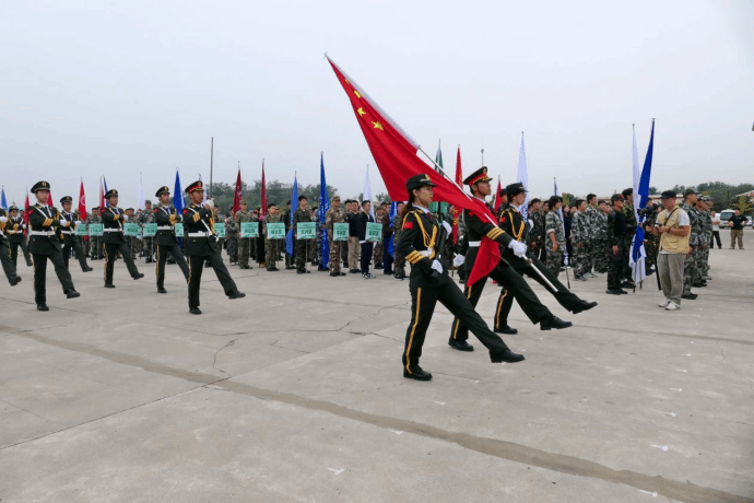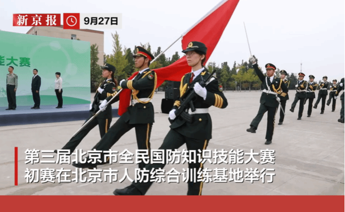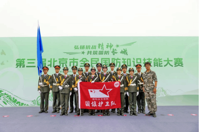 为深入学习贯彻习近平总书记关于加强全民国防教育的重要论述,纪念中国人民抗日战争暨世界反法西斯战争胜利80周年,中共北京市委宣传部、北京市国防动员办公室、中共北京市委教育工委等单位于2025年9月27日,在北京市人防综合训练基地联合举办了以“弘扬抗战精神、共筑国防长城”为主题的第三届北京市全民国防知识技能大赛。在本次庄重盛大的活动中,我校国旗护卫队荣幸接受组委会特别邀请,承担开幕式升旗的重要任务。