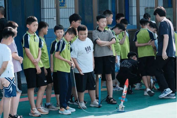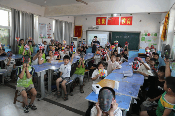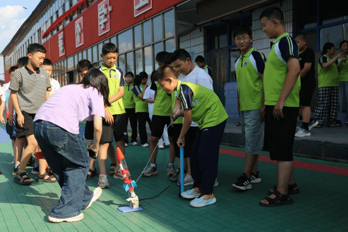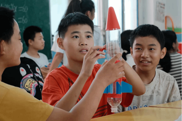 实践队员以专业所长为基,充分发挥跨学科专业优势,精心设计了一系列特色课程,为育才小学的孩子们搭建起一座通往更广阔世界的知识之桥,让乡村孩子们的暑期生活焕发出别样光彩。在传统文化课堂中,同学们亲手绘制京剧脸谱,感受忠勇仁义的中华精神;扎染工艺课上,素白布料在巧手制作下绽放出绚丽纹样,展现传统技艺的魅力。科学实验课上,“水火箭”发射实验、“特工密信”活动让同学们在动手实践中领悟科学原理,在欢笑声中播撒科学探索的种子。实践队还推出跨学科融合课程,如英语剧《愚公移山》和《小红帽新编》,学生们用英语演绎经典,传递文化自信;辩论课围绕“合作与竞争”展开思维交锋,创意拼贴诗歌课则让想象力自由飞扬……这座桥,传递的不仅是知识,更是视野、信心与未来。