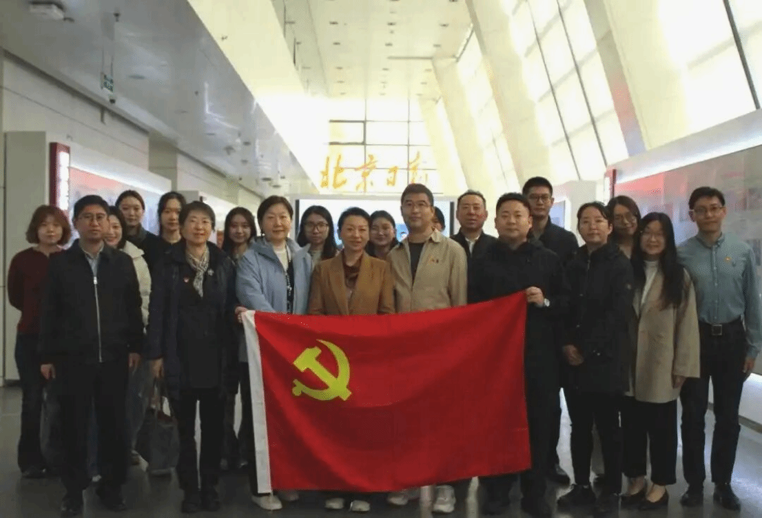 活动结束后,我校师生党员与北京日报社编辑和记者在北京日报社合影留念。本次联合主题党日活动不仅是一次深刻的主题教育,更是一次首都主流媒体与高校之间的校媒联动,将党建工作的政治优势转化为推动事业发展的强大动力,为文传系传播学专业转型发展与国际传播人才培养注入了新的活力。期望未来双方单位发挥各自的优势,根据各自资源优势和业务发展需求,在新时代对外传播人才培养、新媒体趋势研究、国际传播创新项目实践等方面开展多方面合作,更好地服务国家与社会。