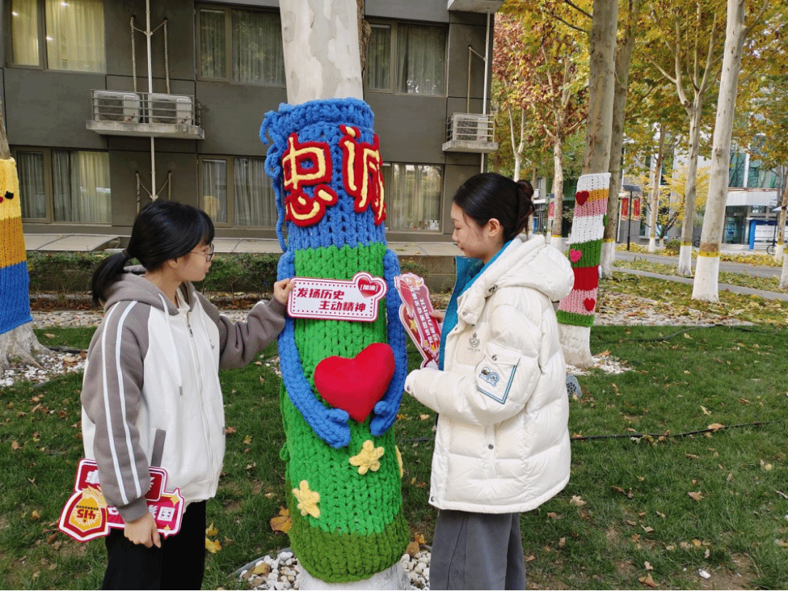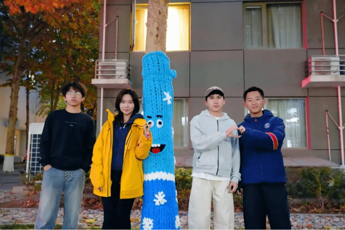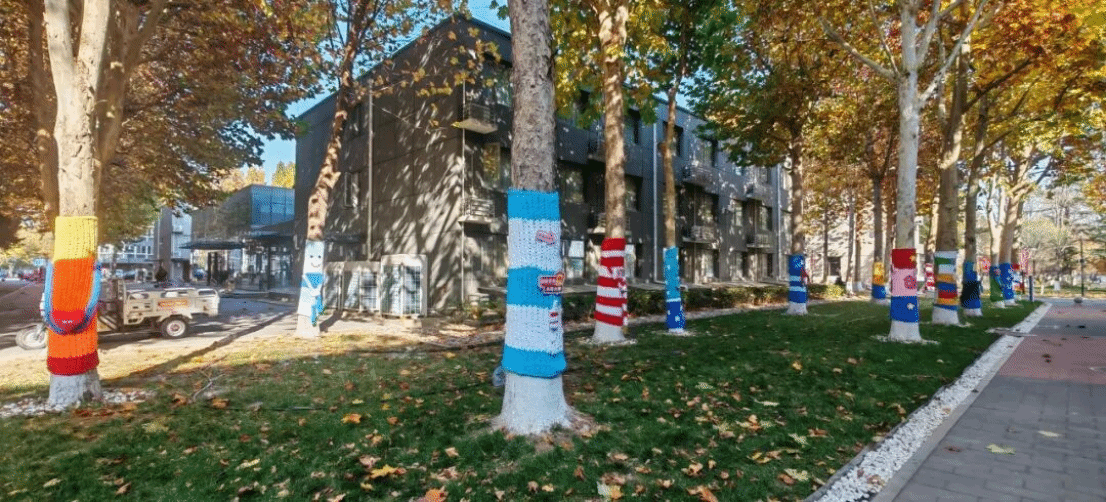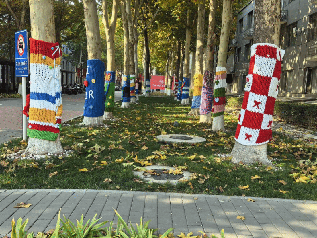 缤纷的绒线代替黄叶装点着树身,
