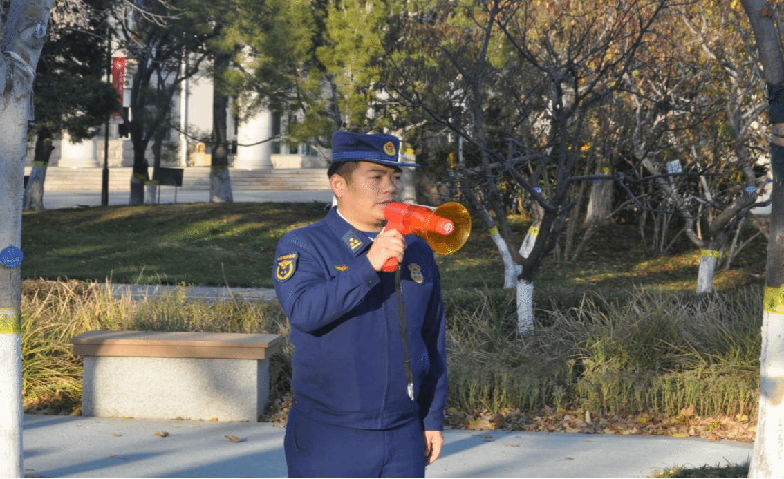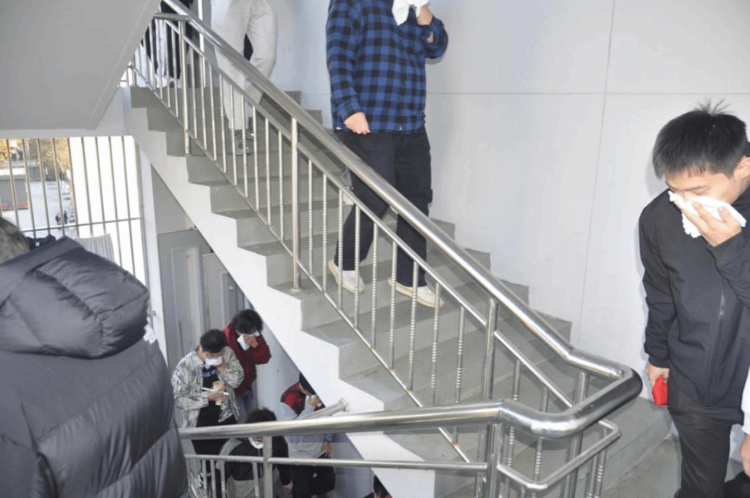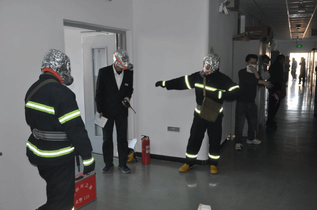 11月13日,消防疏散演练各工作小组人员全部到位,完成现场布置与准备工作。“演习开始”指令下达,警报声准时响起。
