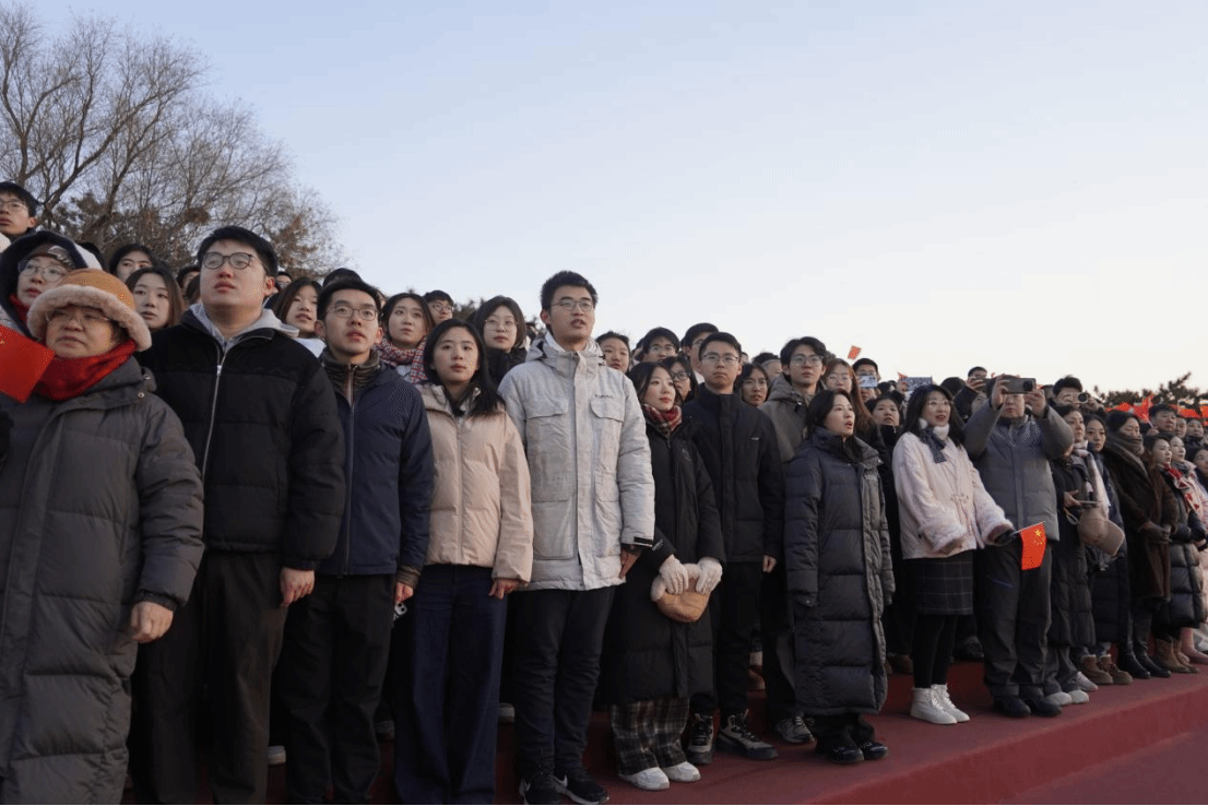 站在新年的曙光里,凝望国旗与朝阳一同冉冉升起,这一刻庄严而澎湃。作为青年教师,我们肩负着为党育人、为国育才的光荣职责,必将以更饱满的热情投身教育事业,弘扬教育家精神,将立德树人融入日常教学管理点滴。新的一年,我们要更加凝心聚力,为培养具有家国情怀与全球视野的卓越人才,书写属于国关人的担当与答卷。