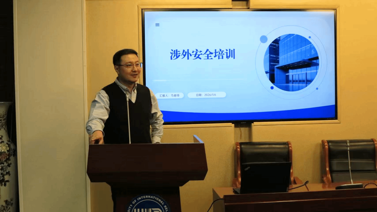 马骁在开展涉外安全行前培训中,结合实际案例强调政治安全首位原则,详细讲解人身、财产安全要点,提醒师生规避各类风险。