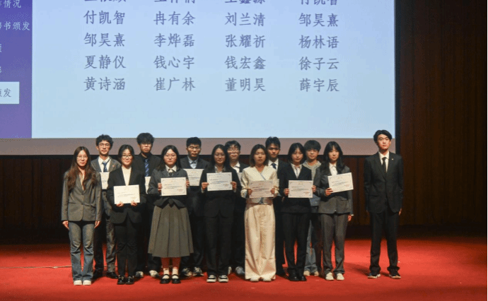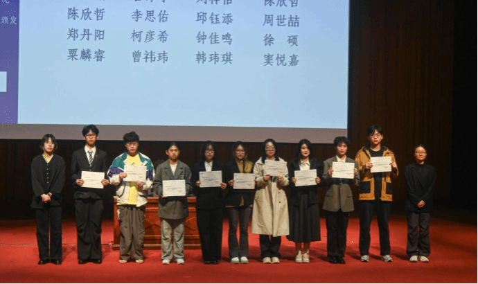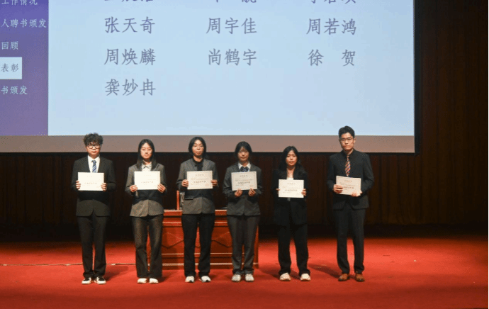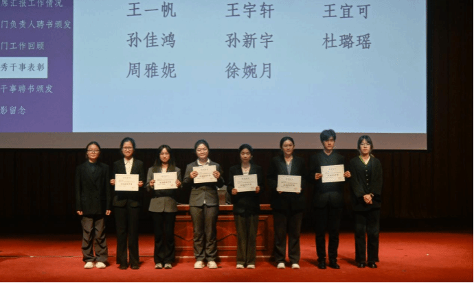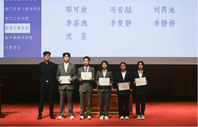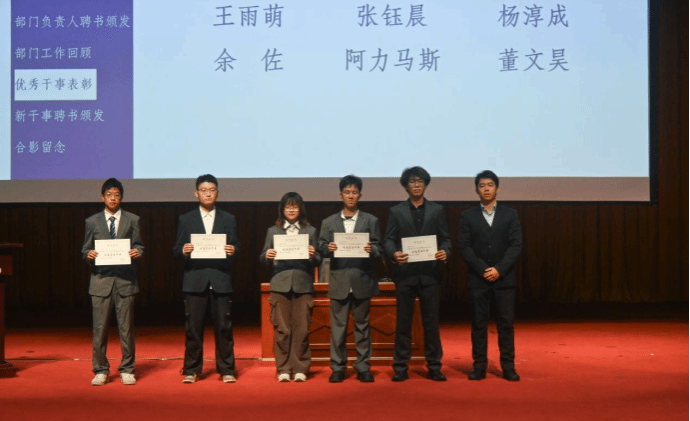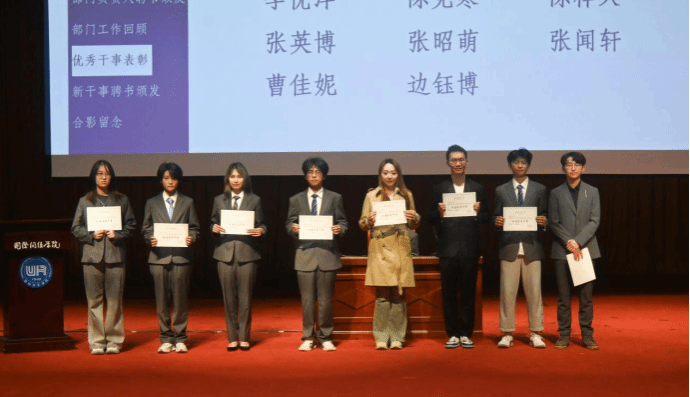 主持人宣读优秀干事名单,各部门负责人为优秀干事颁发荣誉证书并合影留念。