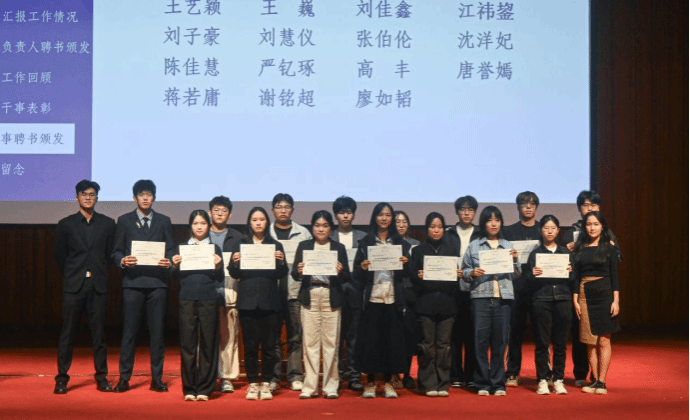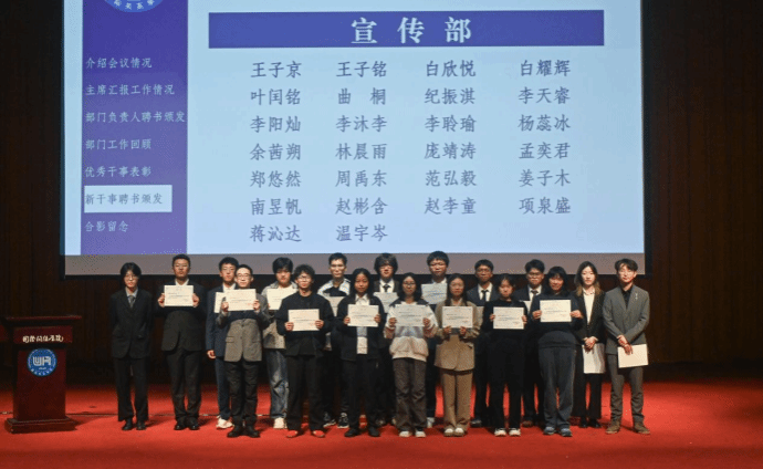 各部门负责人向新加入的干事颁发聘书,并合影留念。