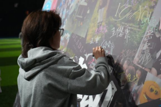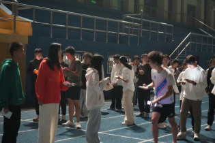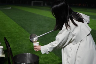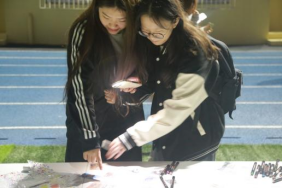 跑道旁,“掌门人” 们早已守候在指定点位,每当有同学跑完一圈,他们便会送上小贴纸和温暖的“问候”。有人跟着音乐节奏慢跑,边跑边轻轻哼歌;有人约着好友并肩前行,互相加油打气;补给处随时能拿到温暖的梨汤和各式各样的小零食,涂鸦签名板前也排起了队 —— 大家拿着双头笔,在主题板上写下名字、画上各种图案,把今晚的记忆 “留” 在操场。
