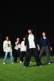 傍晚 6 点的操场,还没等夜跑开始,“随机舞蹈” 环节就先点燃了气氛!动感的 K-POP 旋律准时在操场响起,熟悉的节奏瞬间唤醒全场热情 —— 原本空旷的场地,转眼间化作一场热闹非凡的 “随机舞蹈派对”。前奏刚起,就有同学默契上前,从《hype boy》到《BangBangBang》,每一个动作都精准踩点。