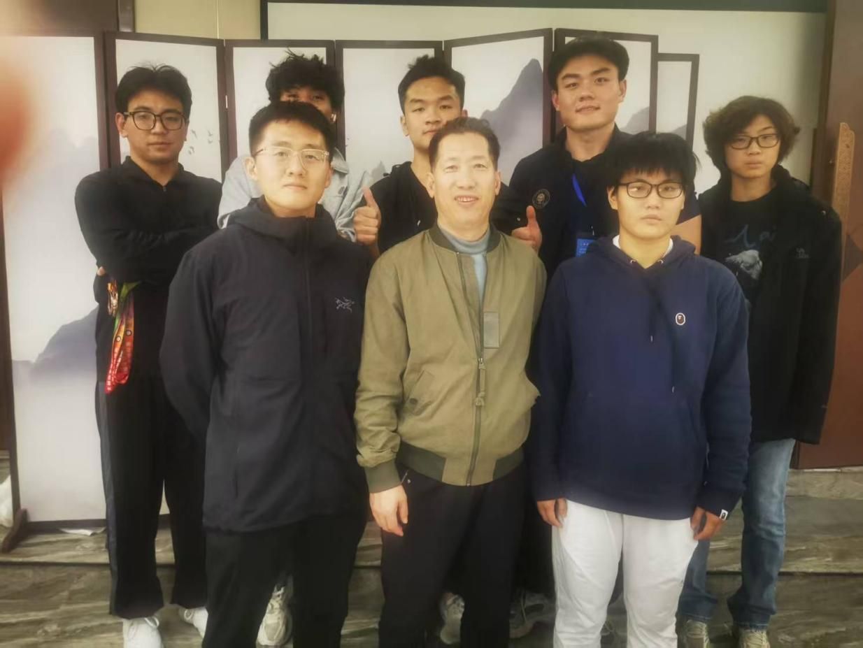图4 :学长朱恭博(前排左1)为学弟学妹加油庆功