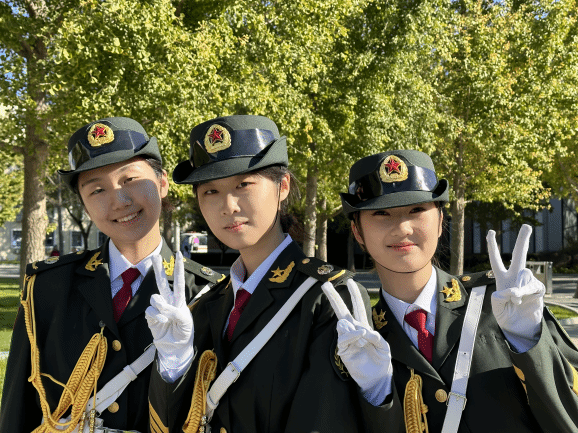 在下午的队列展示过程中,队员们以整齐划一的动作和默契的团队协作完成了每一个规定动作。他们的步伐坚定有力,节奏把控精准,用实际行动展示了国关学子的风采!