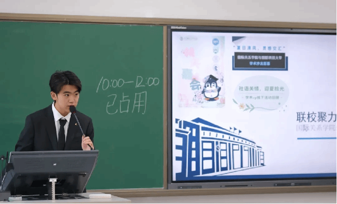 综合事务部负责人张国煜同学从外联工作的角度,介绍了我校学生活动的多元面貌。他提及了备受好评的四校春日舞会、惠及学子的“国关卡”优惠项目、与国防科技大学联合举办的学术沙龙,以及与社科大共同开展的‘迎夏拾光’校际联谊等活动,充分展现了我校在外联实践与学术交流方面取得的成就。