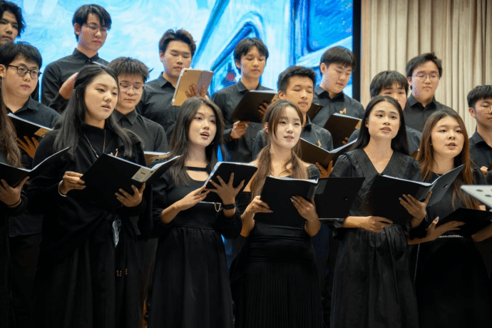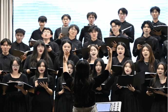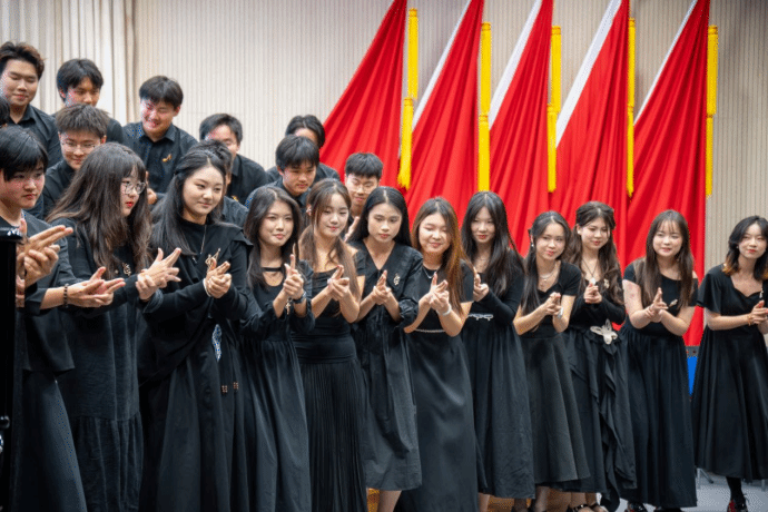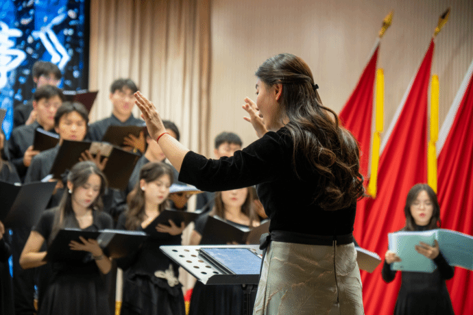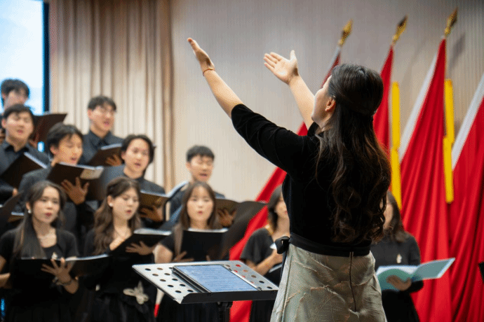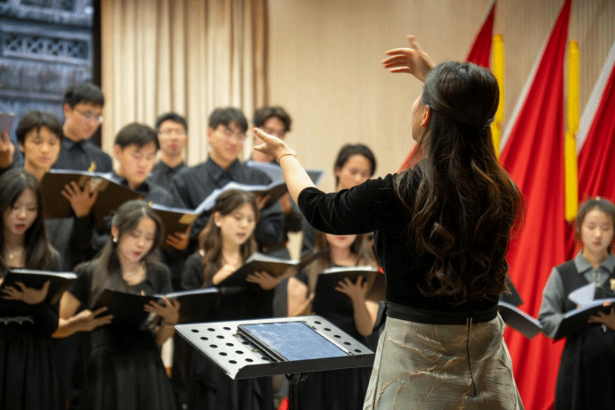 歌声如山间清泉,轻盈流淌。没有伴奏的指引,各声部如水波般交织、追逐,带着透明的凉意与闪烁的阳光,在空气中漾开一圈圈纯净的涟漪,让整个空间都充满了自由的呼吸。