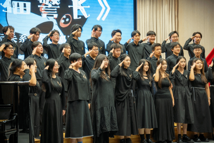 “眼睛瞪得像铜铃,射出闪电般的精明。”当熟悉的《黑猫警长》的旋律奏响,童年的回忆瞬间被勾起!合唱团在唱响经典歌曲的同时结合有趣的rap,把童年的热闹搬进了和声里:高声部跳着俏皮的旋律,低声部踩着活泼的节奏,幼稚又轻快,让我们回忆起儿时那个吃着西瓜看动画片的,充满孩子气的童年。