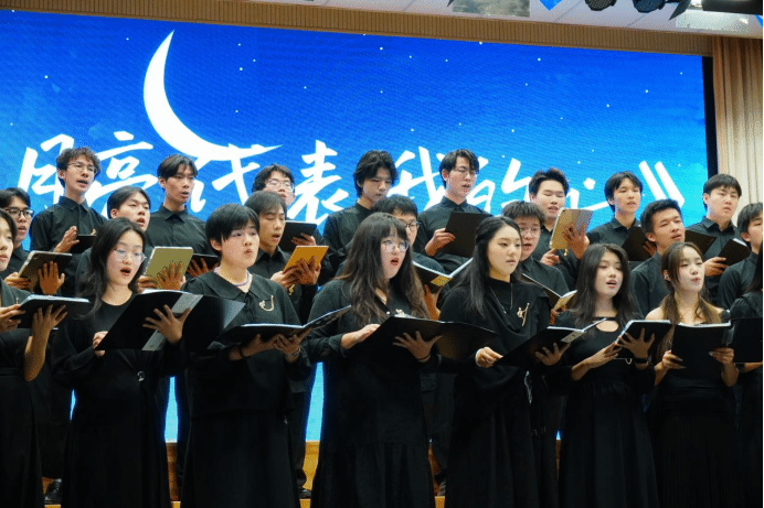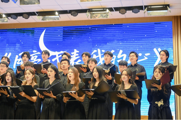 温柔的琴键敲击声中,月光化作朦胧的音符,轻颤在每个人心口。“我的情不移,我的爱不变,月亮代表我的心”,合唱团的大家用歌声将一捧月色邀上舞台,浅唱里藏着的是最朴素的深情——不仅是团员们对合唱团的眷恋,更是那份代代相传依旧滚烫的热爱,不畏时间,无惧距离。