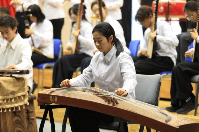 刹那间,乐曲如爆竹般炸响!唢呐高亢嘹亮,是直冲云霄的蛇首,引领着欢腾的队列;琵琶、古筝的轮指与刮奏,如同金鳞在阳光下飞速翻动,闪烁出令人目眩的光泽。鼓则敲击出铿锵分明的节奏,那是狂舞的筋骨与奔腾的足音。旋律越来越急,气氛越来越热,一股不可抑制的欢腾与生命力席卷全场,将一幅“金蛇狂舞贺升平”的炽热画卷,淋漓尽致地铺展在听众眼前。