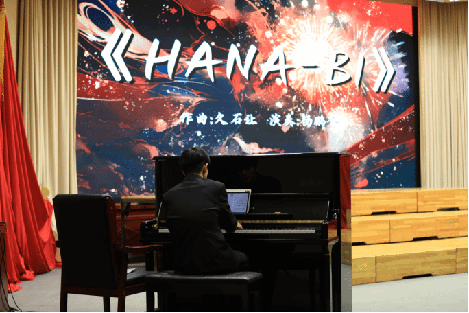 接下来,让我们暂时告别和声交融,品味钢琴独奏带来的魅力。当久石让的经典之作《HANA-BI》被杨鹏冬同学奏响,这首曲子蕴藏着的温情与深意便也融进琴声流转间。既有治愈心灵的舒缓,也有触及心底的力量。让我们静静聆听,在黑白琴键的跳跃中,感受如烟花般绚丽而易逝去的灿烂与落寞。
