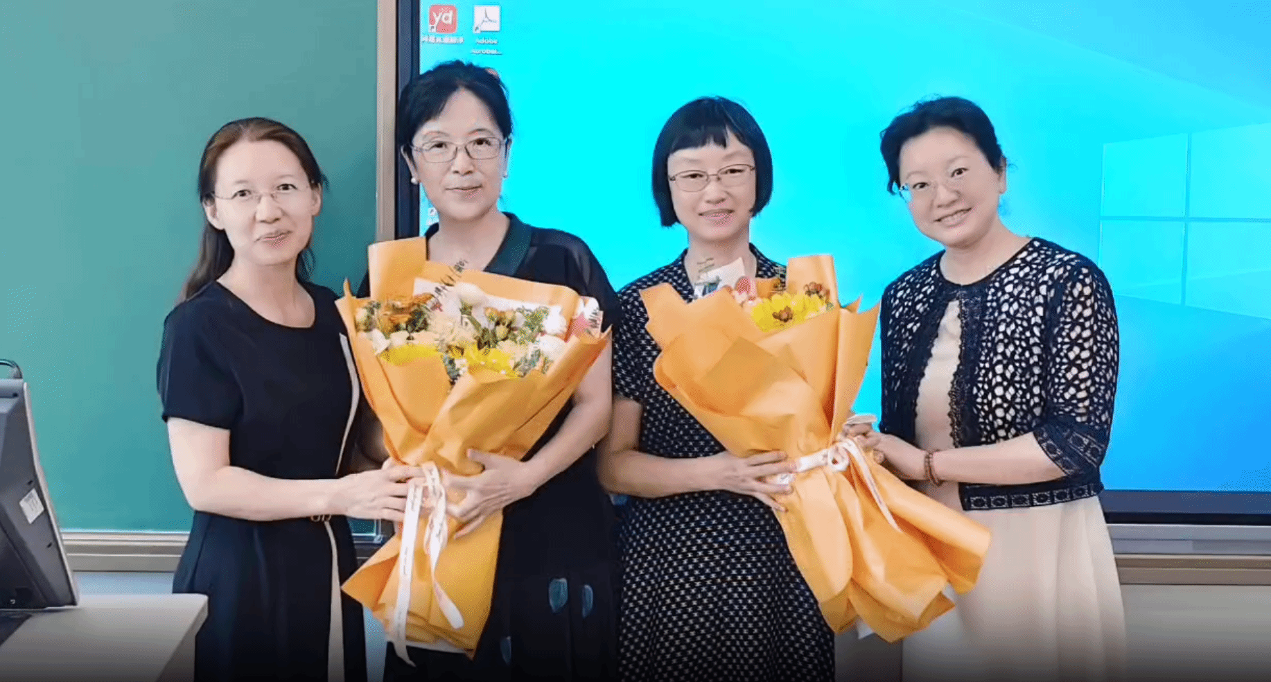 在荣休仪式环节,英语系主任王文华教授深情回顾了杨亚东、谢葵两位老师数十载的执教生涯,高度评价她们为国关英语教育事业作出的卓越贡献。两位荣休教师随后发表了感人至深的退休感言。杨亚东老师动情地回忆了参与综合英语课程改革的经历,特别提到团队精诚合作开发的SPOC课程不仅荣获多项国家级、省部级教学成果奖,更凝聚了深厚的同事情谊。她对新一轮大学英语课程改革充满信心,相信团队定能再创佳绩。谢葵老师则以"教育就是一场温暖的相遇"概括其36年教学生涯,她特别赞赏青年教师群体的专业素养和创新精神,认为他们必将在AI时代背景下推动英语教学实现新的突破。